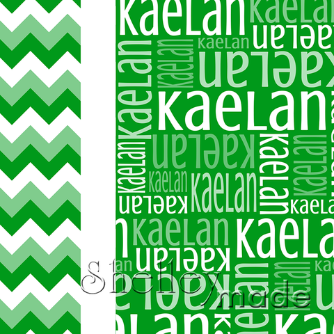 The name design is used for the entire back of the pillowcase and the majority of the front, with your choice of our coordinate designs as a contrast piece for the front. It also has an optional trim piece as pictured in the sewn photograph.